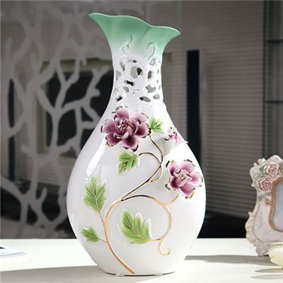 高档陶瓷花瓶景德镇手绘描金珐琅彩花瓶现代中式简约家居摆件